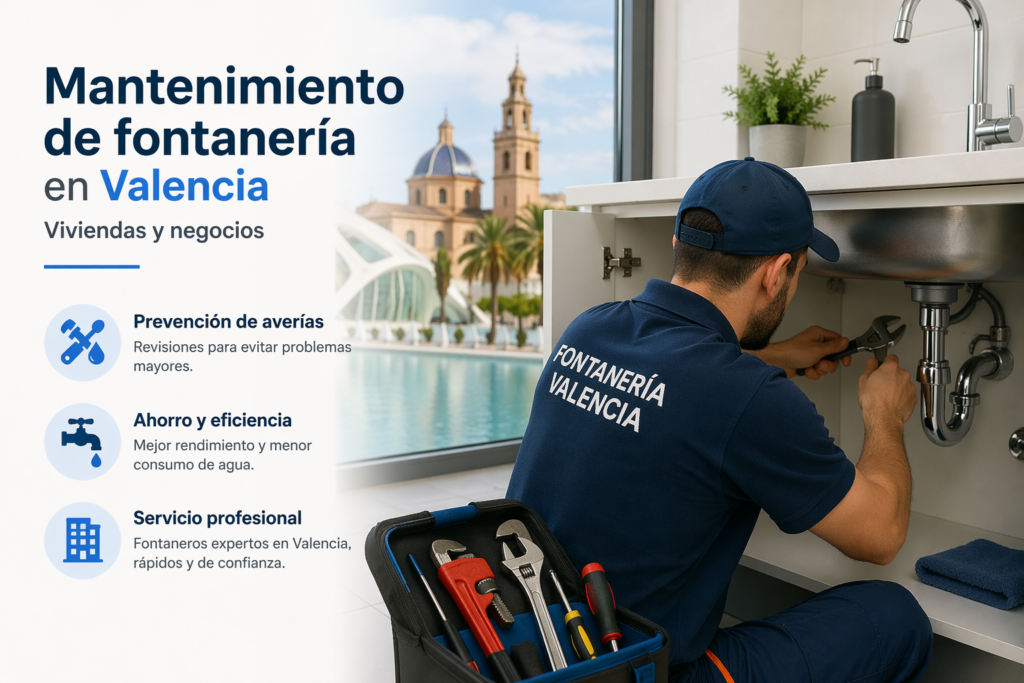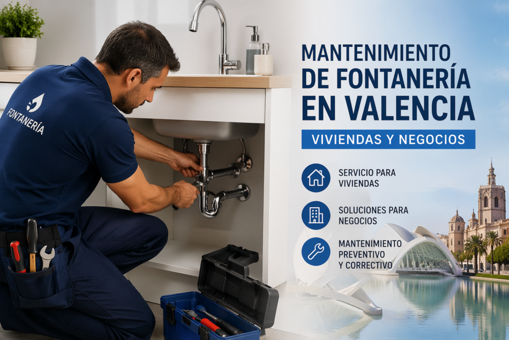 Servicio profesional de mantenimiento de fontanería en Valencia para viviendas, oficinas, locales y negocios. Revisión de instalaciones, prevención de averías, detección de fugas y soluciones rápidas.